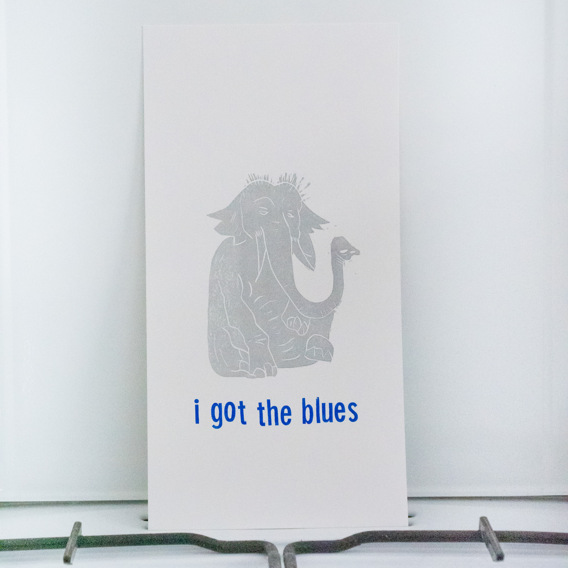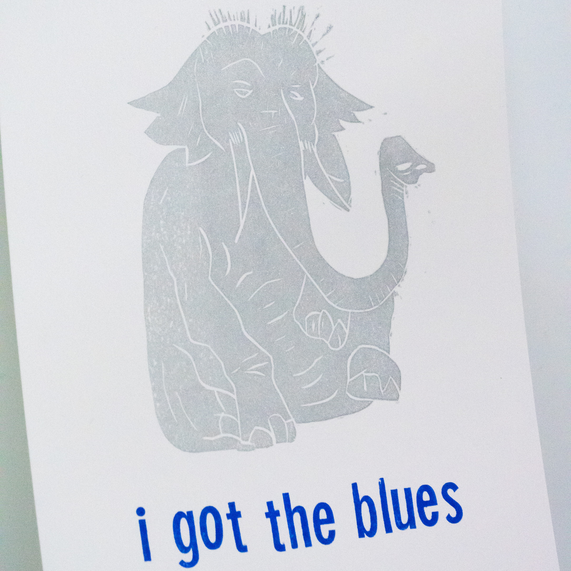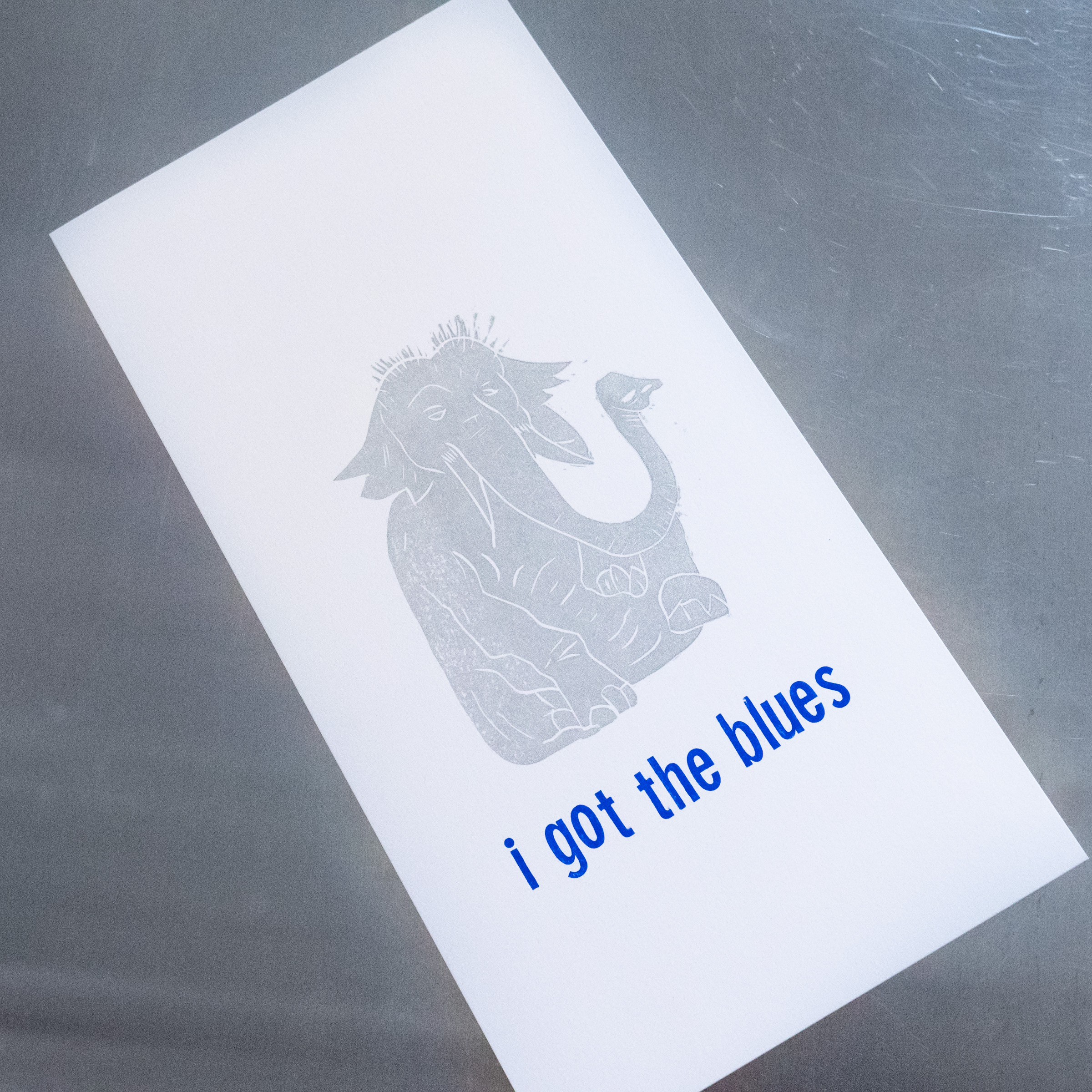 Dieser Holzschnitt von Tobias Premper und Sebastian Moock wurde mit einzelnen Lettern von Hand gedruckt. Er ist in Silber und Blau im Format 16x31cm.